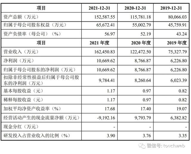 招股书显示,元道通信2019年、2020年、2021年营收分别为7.53亿元、12.25亿、16.25亿;净利分别为6226.8万元、8766.87万元、1.07亿元;扣非后净利分别为6023.39万元、8260.64万元、9784.4万元。