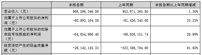 此外,2025年1-6月,公司实现营业收入9.66亿元,同比增长1.30%;归属于上市公司股东的净利润为-6,089.32万元,上年同期为-8,143.63万元;归属于上市公司股东的扣除非经常性损益的净利润为-6,485.50万元,上年同期为-8,882.62万元;经营活动产生的现金流量净额为-2,614.22万元,上年同期为-3.23亿元。