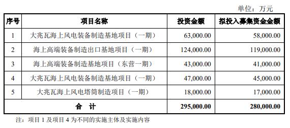 昨晚,海力风电发布向不特定对象发行可转换公司债券预案。本次发行可转换公司债券的募集资金总额不超过人民币280,000.00万元(含本数),扣除发行费用后,拟用于以下项目:大兆瓦海上风电装备制造基地项目(一期)、海上高端装备制造出口基地项目(一期)、海上高端装备制造基地项目(东营一期)、大兆瓦海上风电装备制造基地项目(一期)、大兆瓦海上风电塔筒制造项目(一期)。
