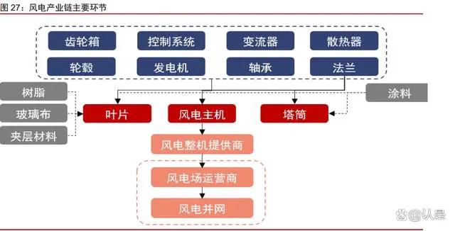 风电产业链分为三部分,整体集中度较高。上游包括原材料供应,包括涂料、树脂、夹层材料等,中游主要是风机整机和零部件厂商,涉及整机制造及配套环节,为风机装机环节所需装备,塔筒、电缆配套整机进行安装。主要部件有发电机、轴承、轮毂等,其生产专业性较强,国内供应商技术较为成熟、国内供给充足;下游是风机运营环节,则指风电运营商,即新能源发电业主。