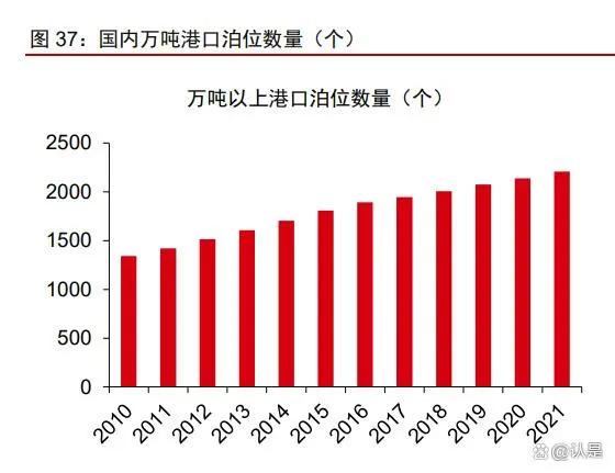龙头企业布局优质码头资源,缩短交付周期、降低运输成本。由于运输半径的限制,海上风电企业如何解决大型化趋势下塔筒、桩基重量提升带来的运输问题成为决定企业产能扩张节奏和盈利能力的主要因素。目前行业内三种主流商业模式,分别为自有码头、租用公共码头以及第三方码头,其中自有码头的代表公司包括大金重工、泰胜风能以及海力风电,租用公共码头主要是天顺风能以及天能重工。租用公共码头相较自有码头在吊装、运输等方面均有明显的成本劣势。然而由于我国港口码头资源的稀缺性,通用码头往往需要较长周期的政府规划,根据中国交通网数据,2021 年国内万吨以上码头泊位为 2207 个,较 2020 年仅增加 69 个,过去五年 CAGR 仅 3.2%。目前国内主要沿海省份包括广东、福建、江苏、山东等均可建设码头,然后由于不同地域存在地质差别,因此实质上可建码头省份较少,广东、江苏、山东等成为龙头企业主要布局地。