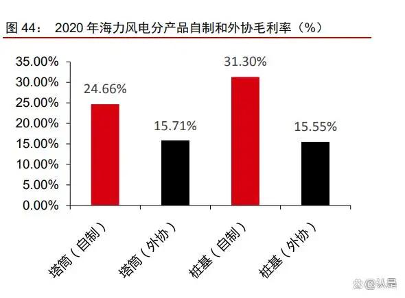 产能瓶颈问题有所缓解,公司外协比例有望持续降低,进而带动公司盈利能力修复。 2019-2020 年受风电“抢装潮”影响,下游客户风电场建设工期较为紧张,由于桩基、塔筒的安装需要分批施工,为保障风电场建设效率,施工方通常选择先安装桩基后安装塔筒,因此公司在“抢装潮”期间优先交付桩基产品,导致桩基产能出现瓶颈,为满足客户需要,桩基产品外协比例在 2020 年明显提升,2018-2020 年公司外协加工费金额分别为 1256/6532/49474 万元,占营业成本比例分别达到 1.73%/5.93%/16.67%。外协生产普遍毛利率水平较低,2020 年海力风电塔筒自制和外协生产毛利率分别为 24.66%和 15.71%,二者相差 8.95pcts,而桩基产品自制和外协生产毛利率分别为 31.30%和 15.55%。我们判断随着公司产能扩张的持续推进,产能瓶颈问题有望得到解决,桩基外协比例料将进一步下滑,带动公司综合毛利率提升,具体来看 2021H1 公司桩基主体外协加工比例为 56.63%,较 2020 年全年降低 21.41pcts,带动整体外协加工费占营业成本比例降低 0.92pct 至 15.75%。