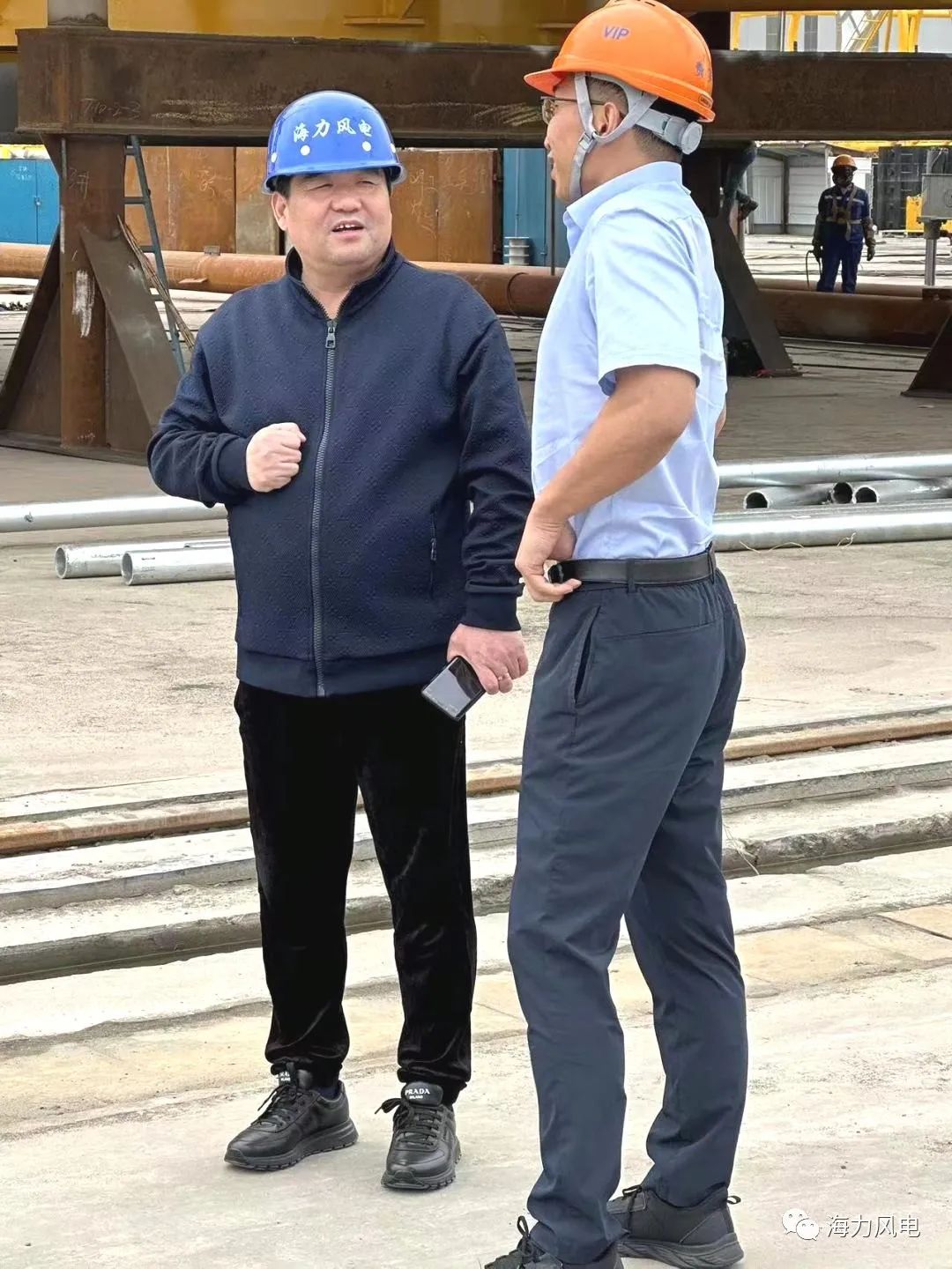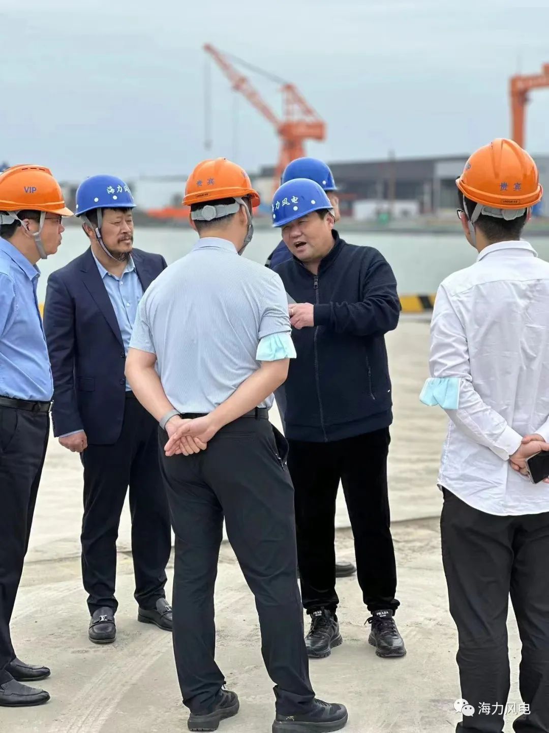 5月24日,海南省工信厅一行来如调研,江苏海力风电董事长许世俊、总经理沙德权、常务副总经理许成辰等公司领导陪同考察。现场参观了海力风电小洋口基地及风电母港、海力风电通州湾基地及车间。
