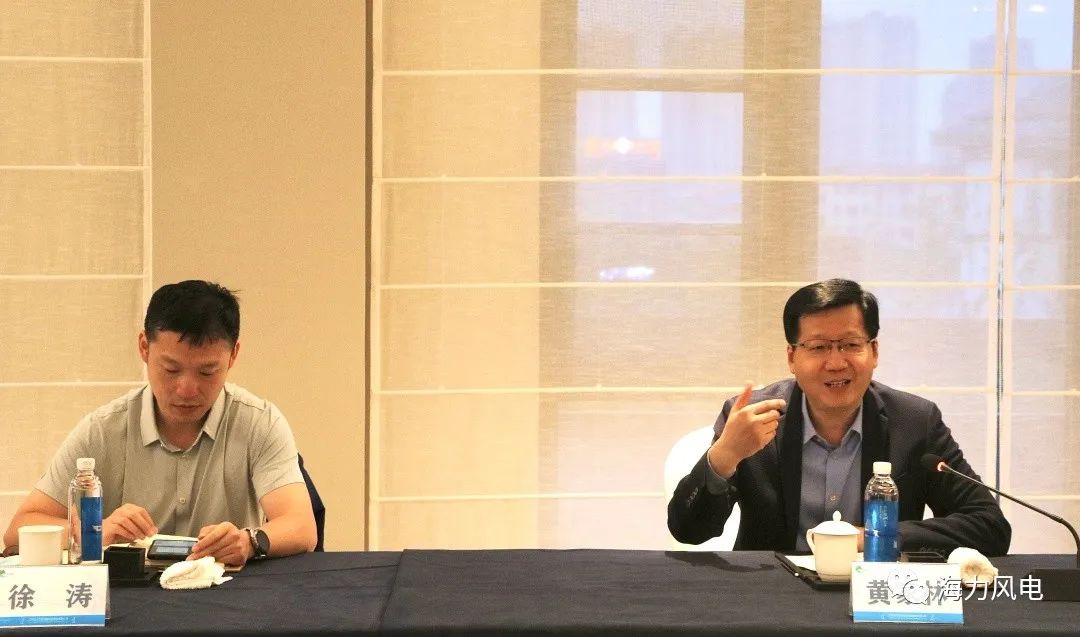 实地参观后举行了海上风电产业发展座谈会。座谈会上,如东县人民政府副县长刘拓及发改委副主任张俊强调了如东的区位优势、海洋优势及发展机遇,为南通经济发展贡献了坚实力量;介绍了推动海上发电产业长足发展的六项措施;同时表示这些年海力风电以严格的质量控制、先进的技术、良好的服务实现了跨越式发展,表达了对海力风电的殷切厚望,希望海力走到海南,拓展更多市场,以标杆力量,为沿海高质量发展提供强大引擎。最后感谢海南一行人的莅临指导。