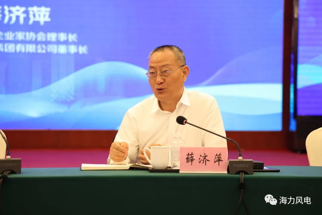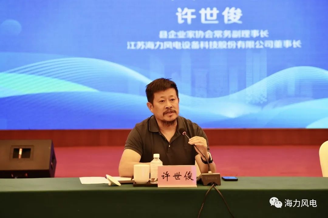 江苏海力风电董事长许世俊以企业发展为基点,为大家阐述了十四五战略规划,分别从基地布局、“两海”战略实施、三大板块效应、全产业链打造、总部大脑建设、智改数转推进等方面做了分享。他强调,在双碳目标引领下,必将与在座各位企业家携手并肩,构建向海图强、向海发展新格局。