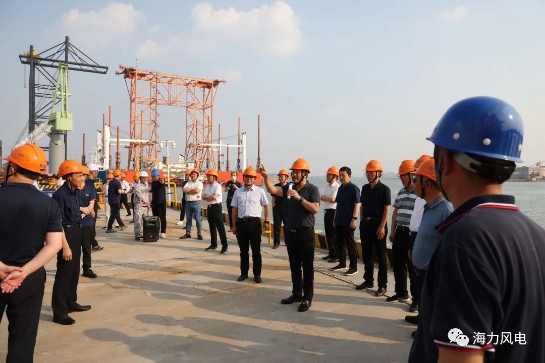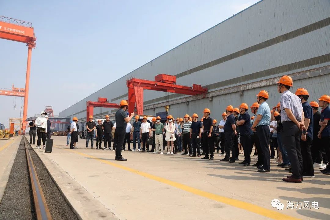 活动中,江苏海力风电董事长许世俊带领各企业家参加了海力海上(小洋口基地)、海力风能(小洋口在建基地),海力装备(通州湾基地)并为大家介绍了基地的项目建设情况及未来发展规划。