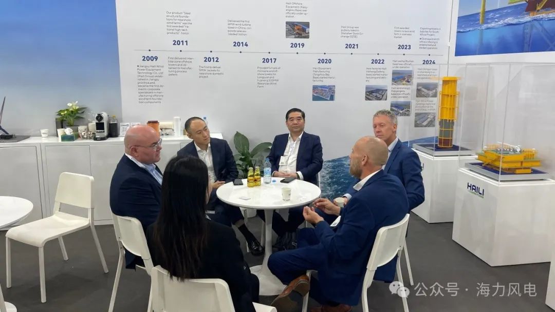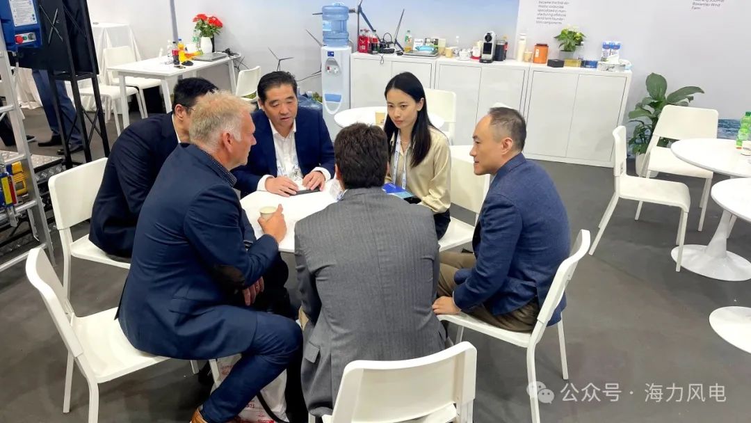 在展会期间,海力风电团队与来自世界各地的供应商、运营商、施工商以及业主进行友好会晤。海力风电积极与业界同仁介绍并展开深入交流与探讨,就行业发展趋势的理解达成一致共识,拉近了与众多行业合作伙伴的距离,为未来共同探索风电领域的机遇与挑战奠定坚实基础。