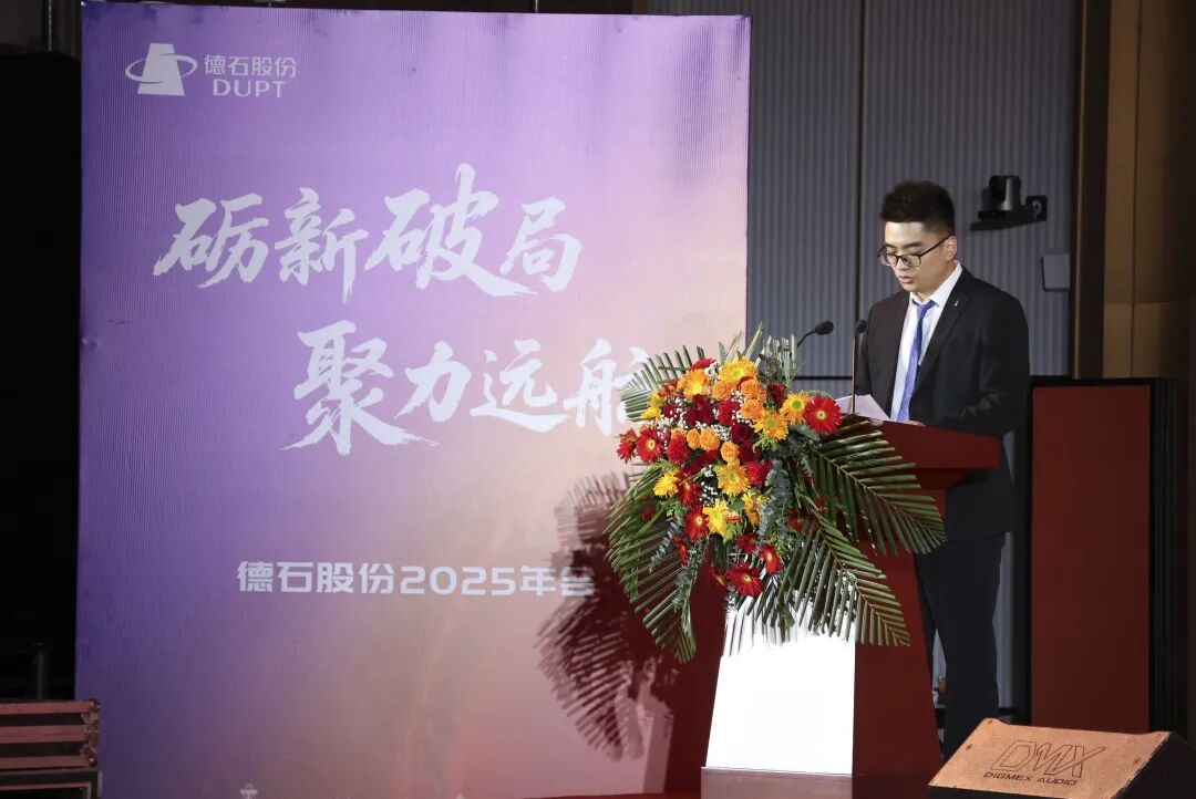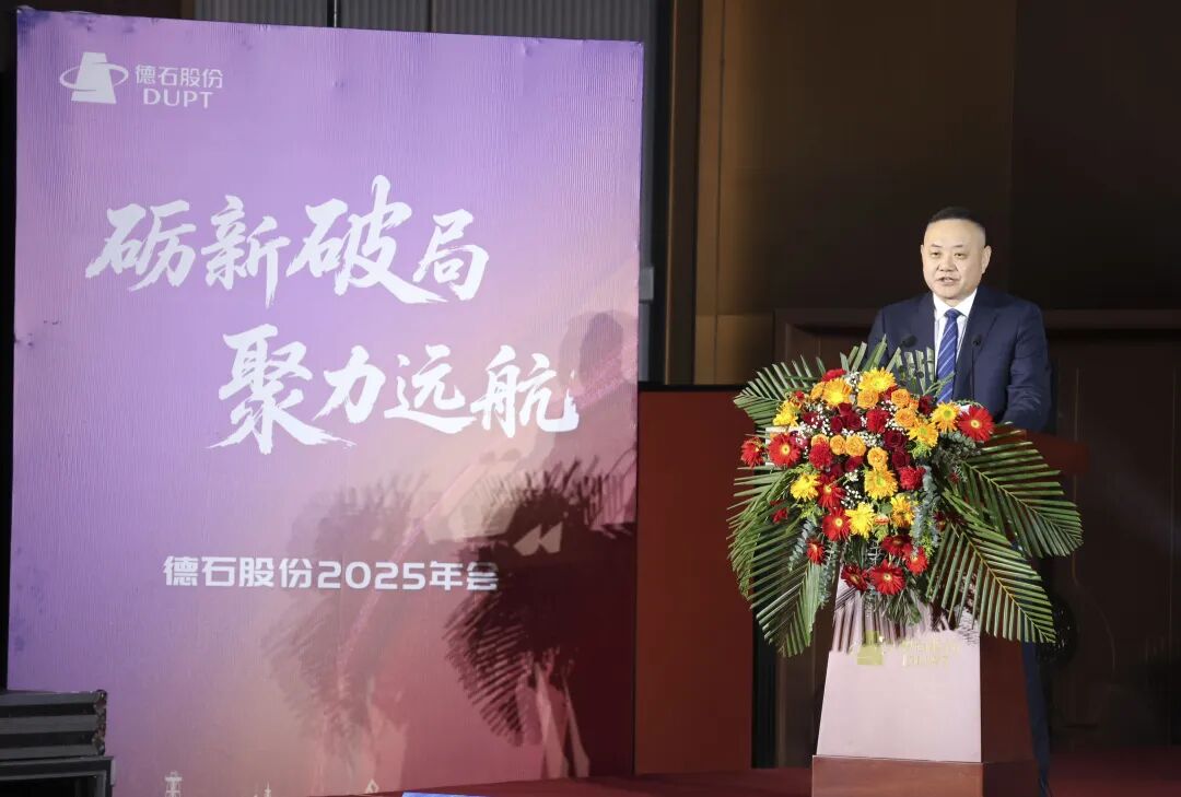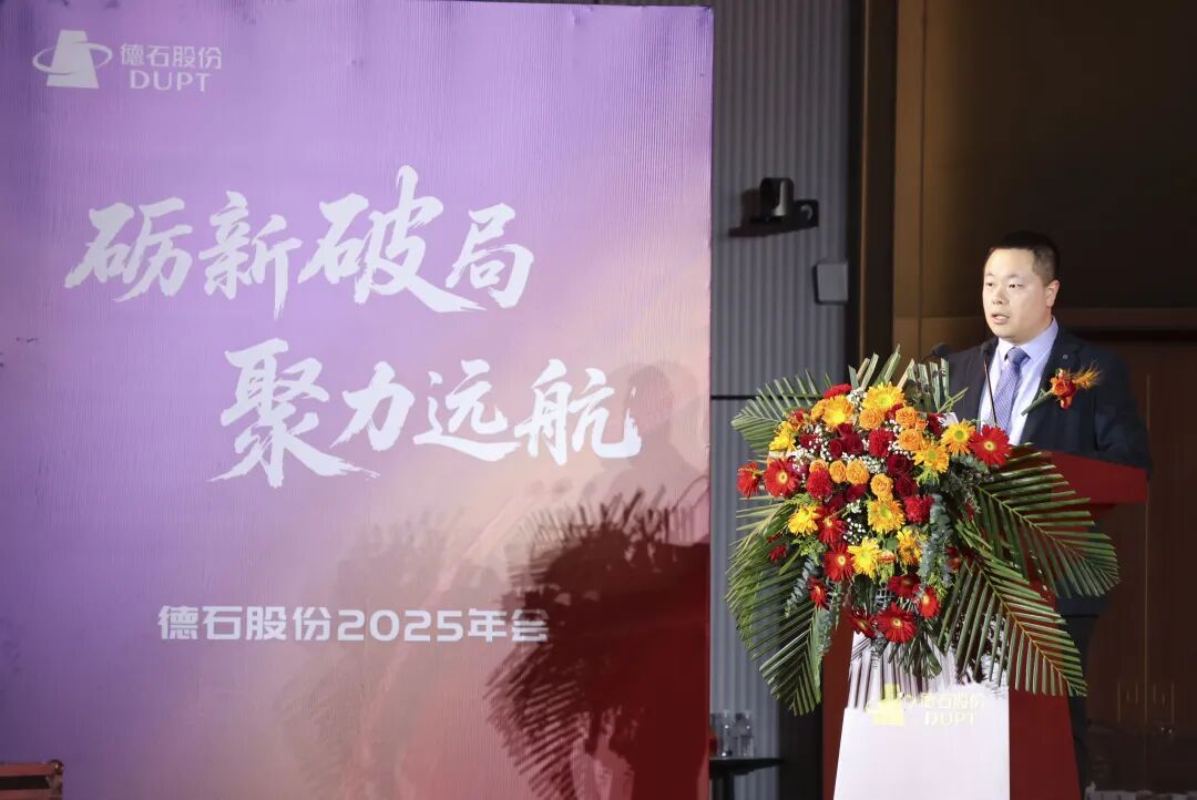 程董强调, “幸福是奋斗出来的,发展是实干出来的” 。他以公司未来的宏伟愿景激励全员,描绘出一幅实现跨越式成长、树立全球行业标杆的国际化企业愿景,并指出“通往未来的道路没有捷径,唯有奋斗与实干、创新与破局”。他号召全体德石人凝心聚力,共同谱写高质量发展新篇章。