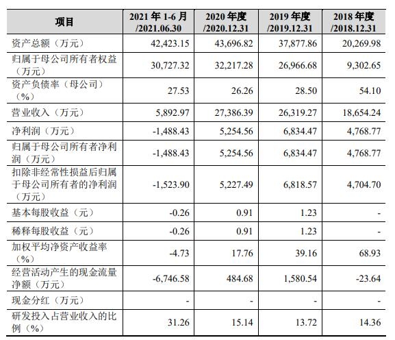 2018年、2019年、2020年、2021年1-6月,三维天地实现营业收入分别为1.87亿元、2.63亿元、2.74亿元、5892.97万元;归属于母公司所有者净利润4768.77万元、6834.47万元、5254.56万元、-1488.43万元;经营活动产生的现金流量净额-23.64万元、1580.54万元、484.68万元、-6746.58万元。