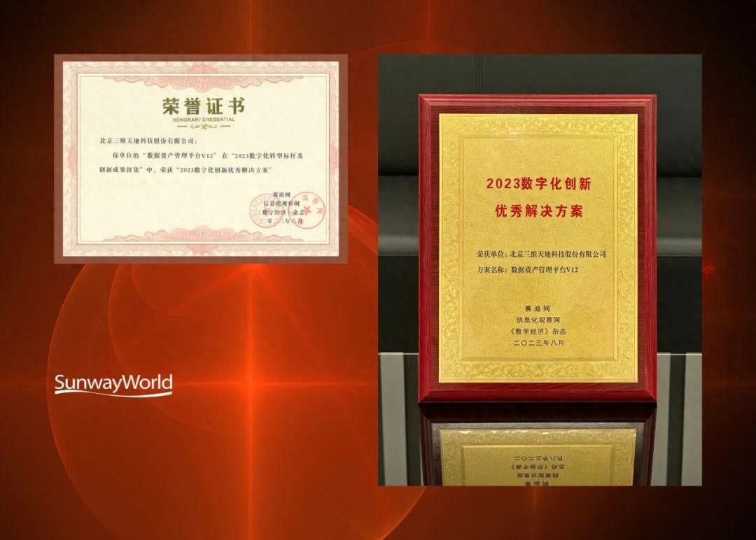 为助力数字经济的高质量发展,2023数字化转型推进大会于8月15日在京举行,并重磅发布2023年度数字化转型标杆成果及创新成果。三维天地凭借过硬的技术实力以及在行业数字化转型实践中的卓越贡献,荣膺“2023数字化转型十大杰出企业”。同时,三维天地全新一代数据资产管理平台V12获选为“2023数字化创新优秀解决方案”。