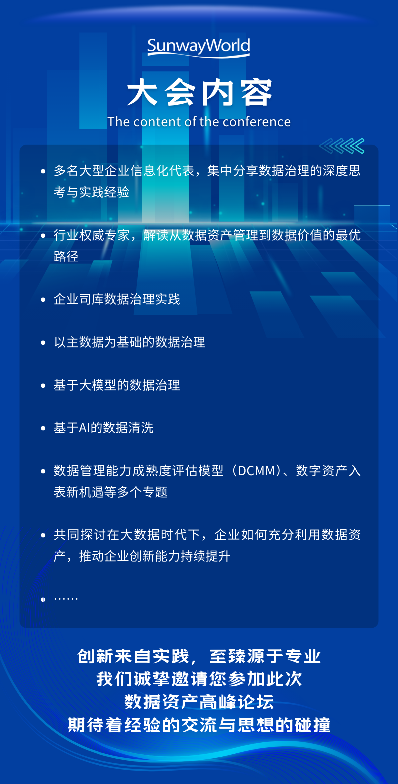 本论坛广聚各界智慧,聚焦企业数据资产管理、数据治理等方面的创新突破与应用实践,探讨理论与实践相结合的企业数字化转型路径,展望未来企业数据智能技术与数据要素价值释放的创新路径,全面构筑高效数据资产管理体系,推动数据资产在企业内部发挥核心价值,从而实现数据驱动的企业创新能力持续增强。