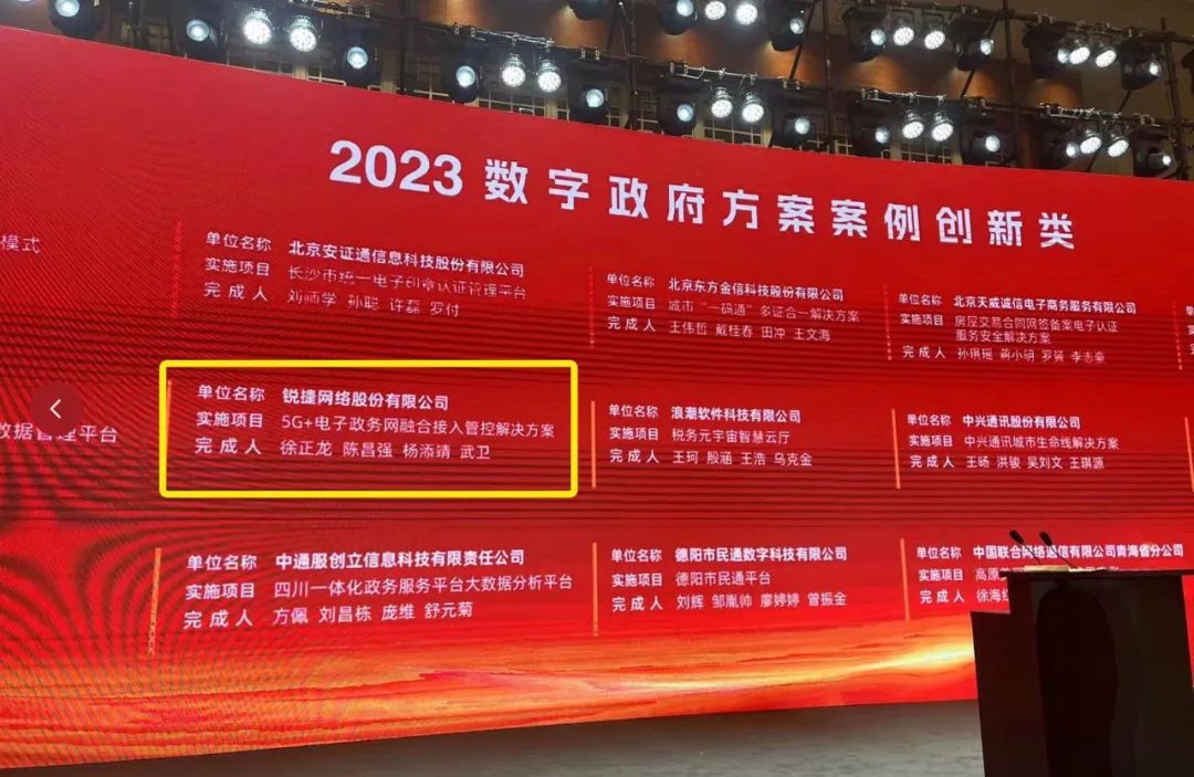 锐捷网络受邀出席此次论坛,政府行业部总经理沙书立代分享了“五位一体夯实政府数智转型基础”数字政府创新性解决方案,以数字服务技术为底座,推动政府数字化运行并为推动国家治理体系和治理能力现代化提供支撑。同时,锐捷网络“5G+电子政务网融合接入管控解决方案”获评“2023数字政府创新成果与实践案例”。