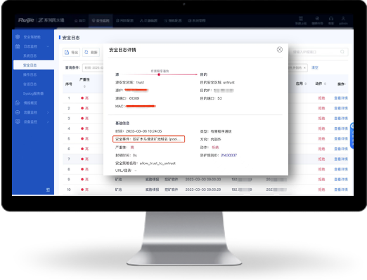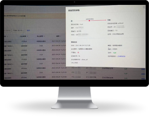 2023年1月,四川省N市教育局部署RG-WALL 1600-Z8620防火墙,开启威胁情报功能,上线30分钟即发现1000+条安全风险告警,其中就包含内网勒索病毒外联的阻断信息,客户及时进行了处置。