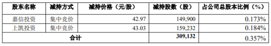 在本次减持期间内,嘉信投资和上凯投资合计减持优宁维309,132股,占优宁维总股本比例的0.357%。