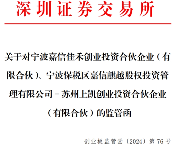 优宁维昨晚还披露了深交所对嘉信投资和上凯投资下发的监管函(创业板监管函〔2024〕第76号)。