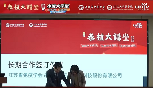 “恭植大讲堂”系列专题活动由江苏省免疫学会和上海优宁维生物科技股份有限公司共同举办,为期三年,每年采用线上线下相结合的方式开设10-20期课堂。在活动前期筹备中,双方经过多轮深入协商,最终就活动时间、形式、内容等达成一致并签订了合作协议。