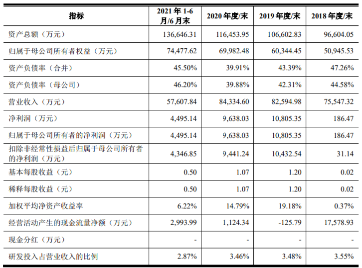 2018年、2019年、2020年、2021年1-6月,通灵股份的营业收入分别为75,547.32万元、82,594.98万元、84,334.60万元和57,607.84万元;归属于母公司所有者的净利润分别为186.47万元、10,805.35万元、9638.03万元和4495.14万元,扣除非经常性损益后归属于母公司股东的净利润为31.14万元、10,432.54万元、9441.24万元和4346.85万元;经营活动产生的现金流量净额分别为17,578.93万元、-125.79万元、1124.34万元和2993.99万元。