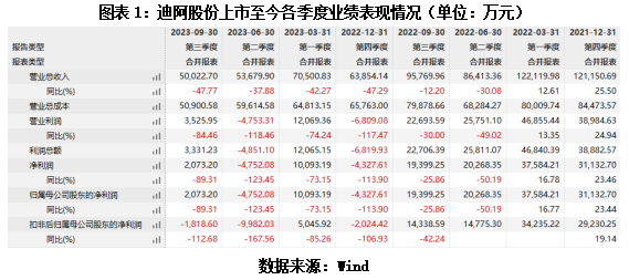 这仅仅是个开始。在2022年三季报、2022年年报、2023年一季报、2023年半年报、2023年三季报中,迪阿股份的营收、归母净利润、扣非归母净利润均同比下滑,其中,2023年上半年和前三季度,迪阿股份扣非归母净利润连续两个报告期为亏损状态。