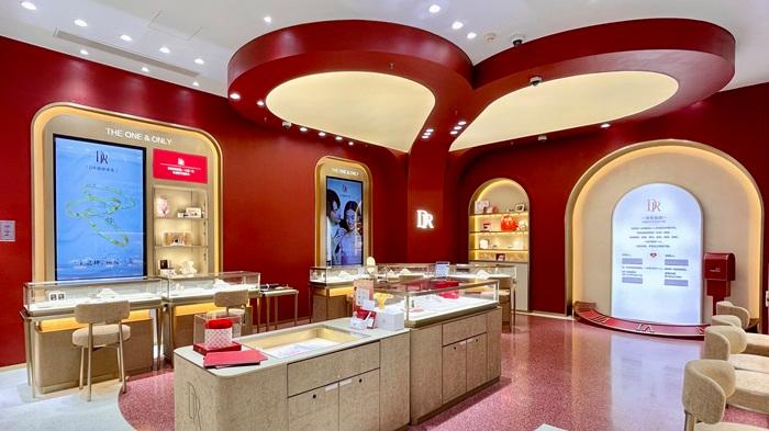 除线下体验店的形象迭代,DR也注重高质量销售渠道覆盖,进驻顶流商圈,今年DR已有数间门店入驻成都IFS、西安SKP、长沙国金IFS等高端购物中心。截至目前,DR已有38家焕新升级的「红金店」、「黑金店」,其真爱网络也已覆盖全球200+城市的多个高端商业地段。