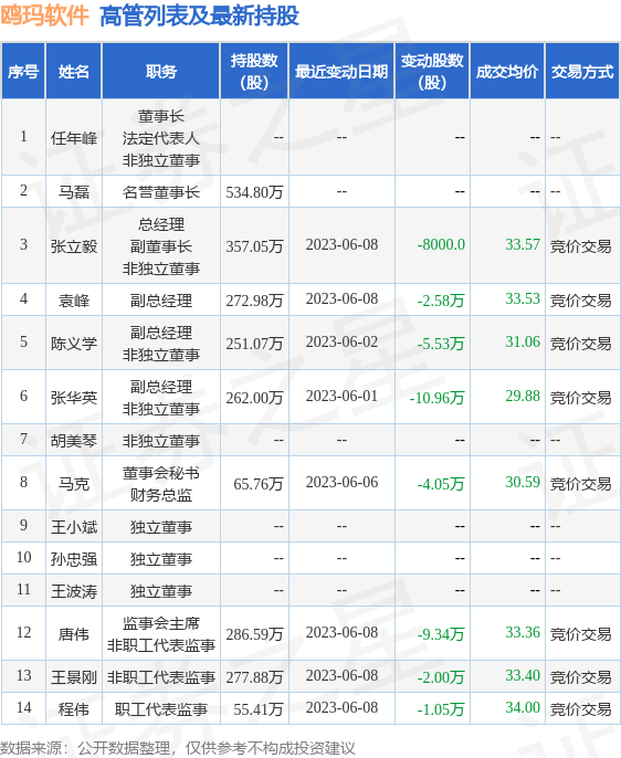 鸥玛软件近半年内的董监高及核心技术人员增减持详情如下: