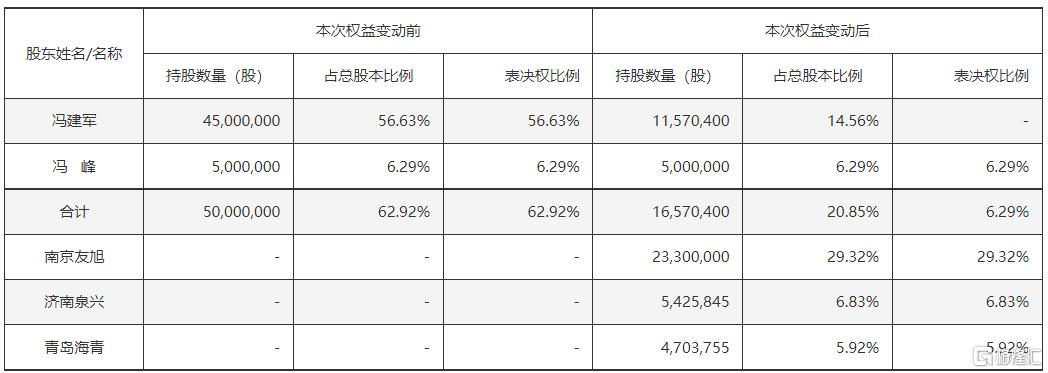 同时,冯建军与南京友旭签署了《表决权放弃协议》,股份过户完成后,冯建军将放弃其剩余股份的表决权,其家族表决权从62.92%降至6.29%。