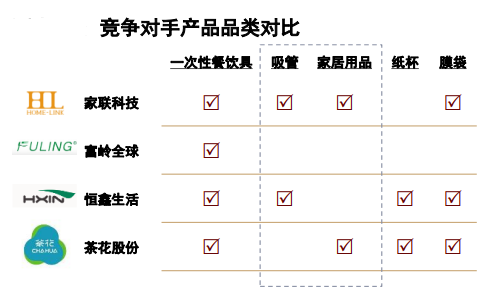 从产业链的情况来看,家联的上游主要为化工行业、制糖制浆行业及机械制造业,如塑胶原材料供应商、蔗渣浆供应商,以及注塑、吹塑机等设备供应商。下游主要包括餐饮、连锁商超等行业,最终可应用于家居、快消、餐饮、