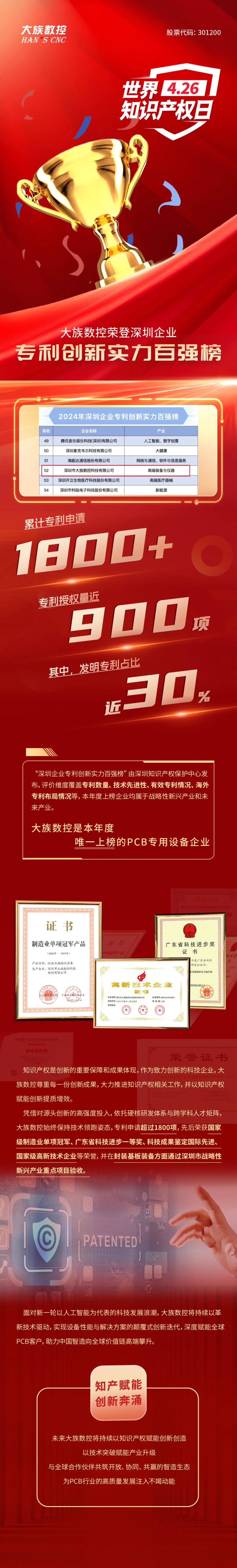 世界知识产权日| 大族数控荣登专利创新实力百强榜