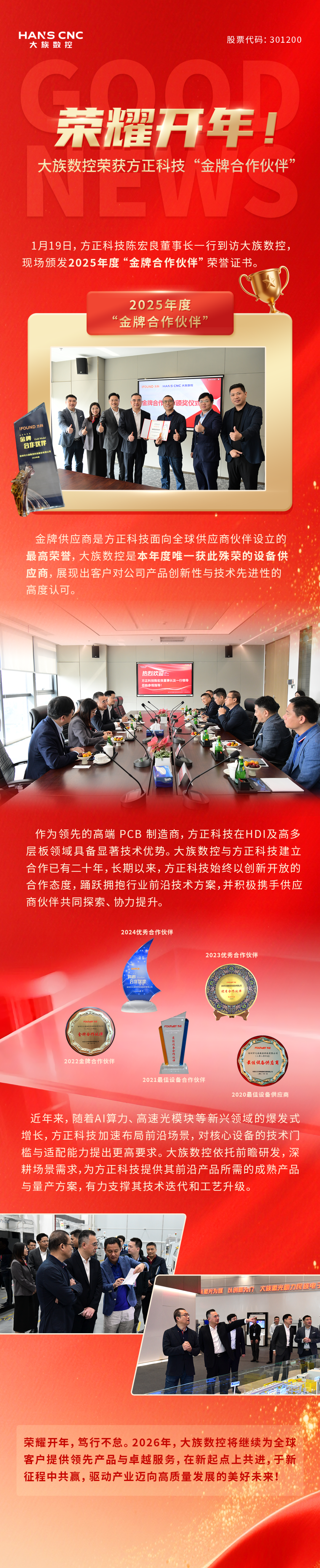 荣耀开年!大族数控荣获方正科技“金牌合作伙伴”