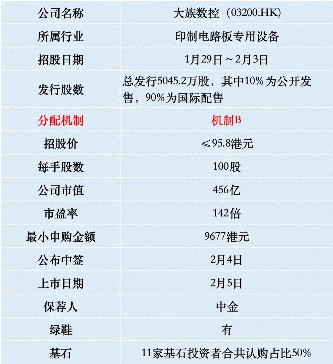 大族数控乙组按5000人申购算,预估乙头中签1~2手。
