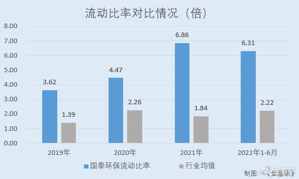 同期,国泰环保同行业可比公司鹏鹞环保、兴蓉环境、中电环保、复洁环保、军信股份、中科环保的流动比率均值分别为1.39倍、2.26倍、1.84倍、2.22倍,速动比率均值分别为1.15倍、2.15倍、1.76倍、2.14倍。