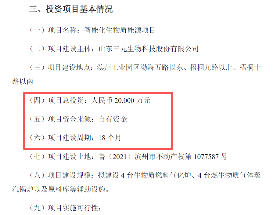 公告称,三元生物于2022年7月22日召开会议审议通过了《关于投资建设智能化生物质能源项目的议案》。为进一步降低公司生产成本,结合公司发展战略规划和经营发展需要,公司拟以自有资金2亿元在滨州工业园区渤海五路以东、梧桐九路以北、梧桐十路以南投资建设智能化生物质能源项目。