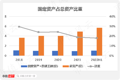 截止2022年上半年末,公司经营杠杆不高,固定资产加在建工程期末合计1亿,占总资产的17.9%,较2018年降低了11个百分点。