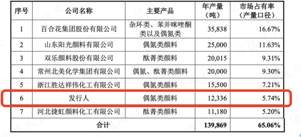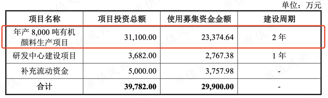 其中,联合化学位列第六,现有有机颜料产量1.2万吨,市占率为5.7%。本次上市公司募资2.9亿,其中2.3亿投向年产8000吨有机颜料生产项目,3700万用于补流。2年建设周期,投产后估计公司颜料产能将跃居第五。