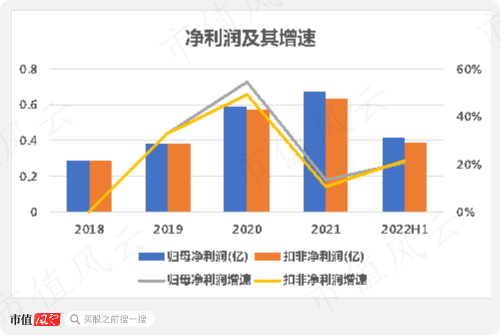 2022年上半年为0.41亿,同比增速为20.7%,但略低于营收增速。从2021年起生产原材料价格上涨,涨幅超过产品销售价格上调,公司也开始增收不增利。
