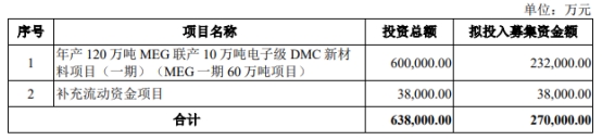 万凯新材发行募集资金总额为30.63亿元,募集资金净额为29.15亿元,超募14.11亿元。2022年3月23日,万凯新材发布的招股书显示,公司拟募集资金15.04亿元,分别用于年产120万吨食品级PET高分子新材料项目(二期)、多功能绿色环保高分子新材料项目、补充流动资金。