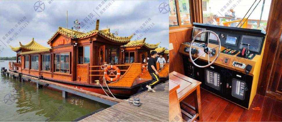 由华是杭御自主研发的新能源电力系统搭载在游船上,船舶便能静谧流畅轻松驶离,丝滑的启动操作,在行驶中没有一点噪音,真有“静如处子,动如脱兔”之感,也没有传统柴油船在行驶中产生的柴油异味,为乘客与船员提供了极致舒适、心旷神怡的航行体验。