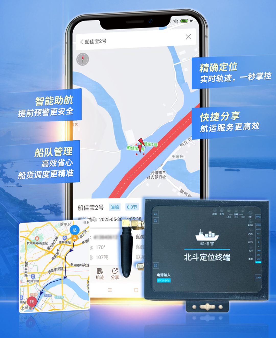 截至目前,BD-300型北斗定位终端已助力五家专业航运公司实现船舶智能化管理,并为广大个体船东提供全天候航行安全保障。无论是大型船队还是个体船东,船佳宝北斗定位终端始终是航行路上的“智慧护航者”!