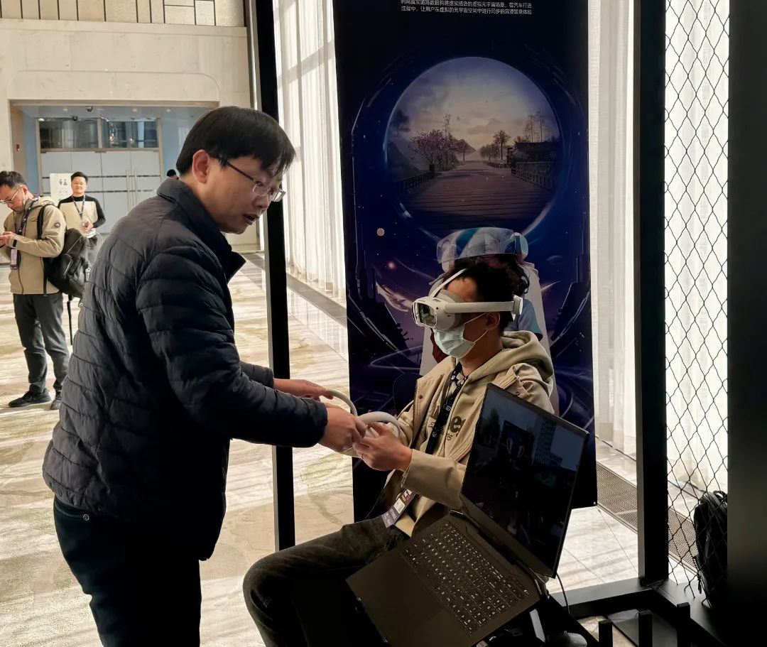 此次在光庭展位带来了最新的车享元宇宙展品。利用真实道路构建数字孪生场景,在虚拟环境中基于实车的高精度定位技术,以及基于车辆移动及用户头部运动的空间位置追踪技术,将真实世界和元宇宙世界进行有机融合,用户可通过穿戴VR设备,将驾乘体验转变为游戏体验,在同步用户视觉及其他感官体验的同时,还能有效降低乘客的晕车风险。目前,光庭信息已经与车厂完成了POC项目开发,正在规划量产方案。
