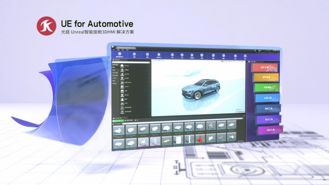 UE for Automotive 是光庭信息凭借深耕汽车座舱软件领域多年的丰富经验,基于 Unreal Engine(虚幻引擎)打造的智能座舱 3D HMI(三维人机交互界面)量产解决方案,以其卓越的轻量化、流程化、组件化、定制化及智能化为特点,重新定义了智能座舱的三维体验。自今年4月在北京车展首次亮相以来,便凭借其轻量化改造、标准化开发以及全面适配 QNX、Linux、Android 等车载操作系统的特性,为 3D HMI 量产项目的快速落地提供有力支撑,获得了业界的广泛关注与高度认可。