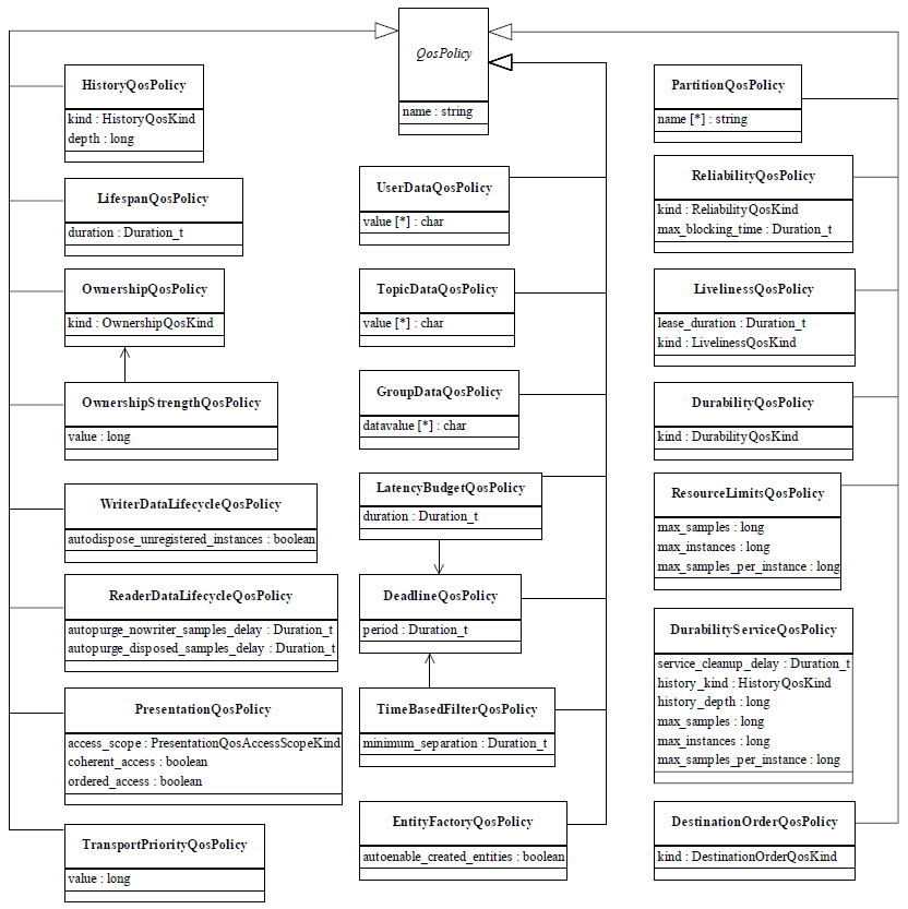 AUTOSAR CP中的DDS可以支持22种QoS策略的一个子集(甚至可以为空),没有强制要求实现任何特定的QoS策略,具体支持哪些QoS策略由开发商自定义,每个实体可以通过静态配置定义其自身支持的QoS策略集。