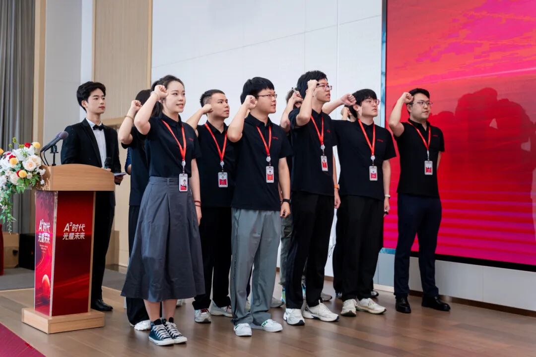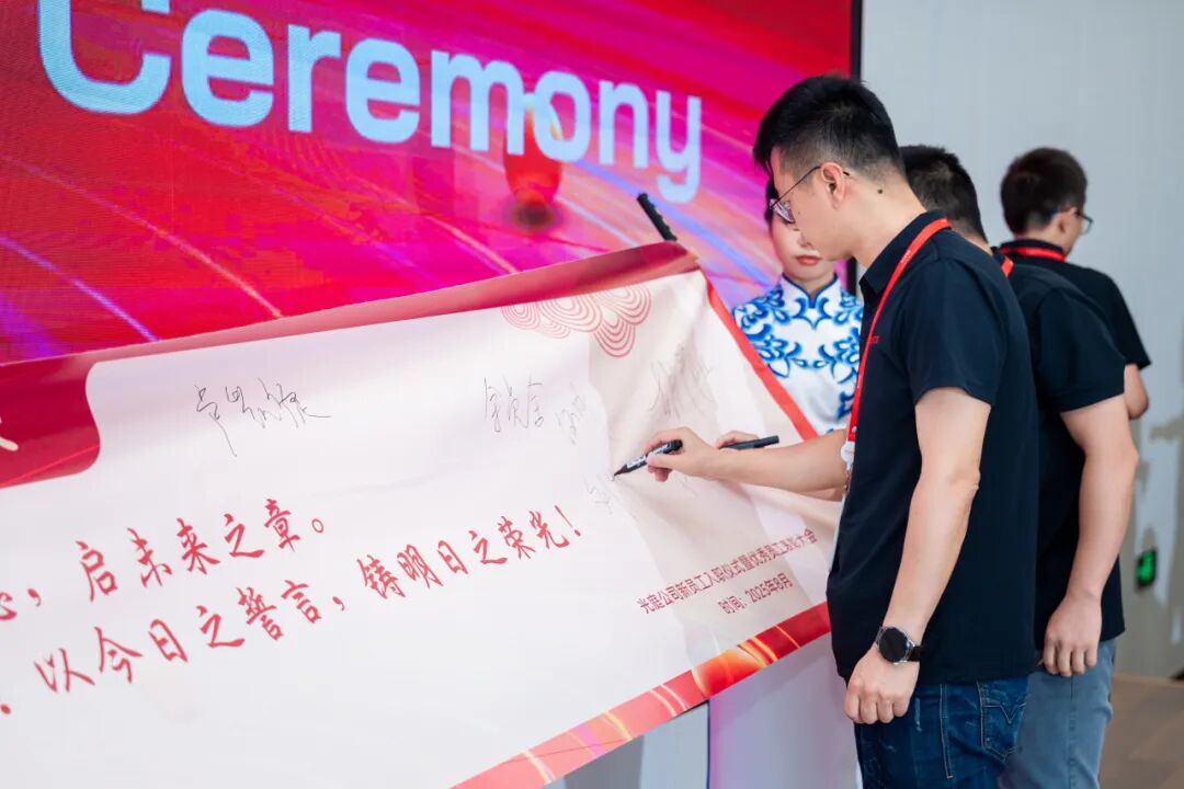 活动在开场视频《光耀未来·大事记回顾》中拉开序幕,新人代表们以部门为单位,精神抖擞、列队入场。他们步伐铿锵、口号响亮,每一句誓言都掷地有声,每一张面孔都写满坚定。在传承仪式上,部门代表与新人代表共同签署传承宣言并进行宣誓,让光庭精神持续传承。
