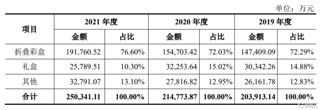 具体来看,中荣股份的主要收入来源是折叠彩盒,报告期内该类业务收入占比均超过7成,且金额持续增长。
