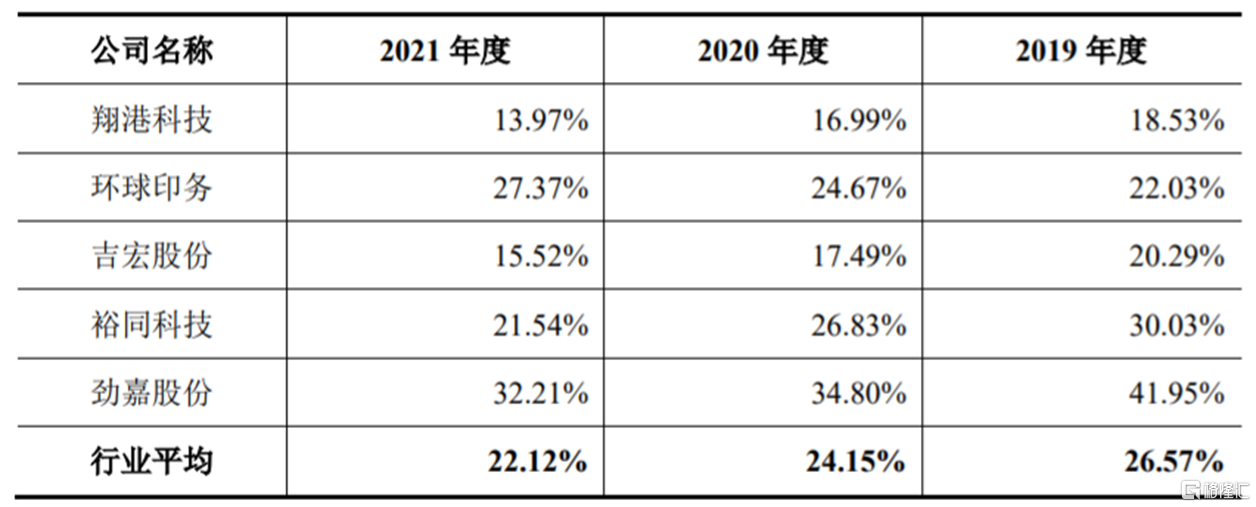 报告期内,中荣股份的毛利率分别为25.37%、23.20%、22.10%,逐年下滑,整体均低于可比公司均值。