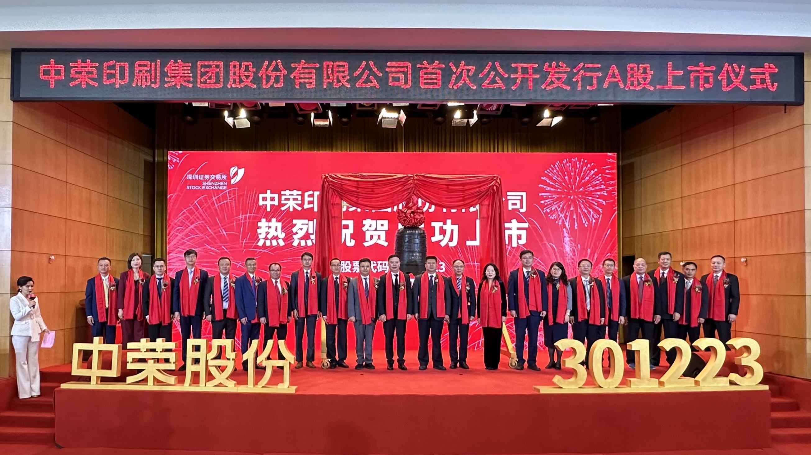 10月26日,中山企业中荣印刷集团股份有限公司(下称“中荣股份”)正式在深圳证券交易所挂牌上市。当天上午,中荣股份在火炬开发区张企大厦举行首次公开发行A股上市仪式。