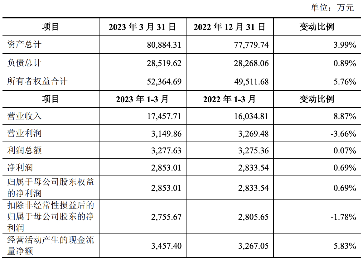 另据招股书披露,恒勃股份2023年1-3月(第一季度)的收入约为1.75亿元,较2022年同期的1.60亿元增长8.87%;净利润2853.01万元,同比增长0.69%;扣非后净利润2755.67万元,同比变动-1.78%。