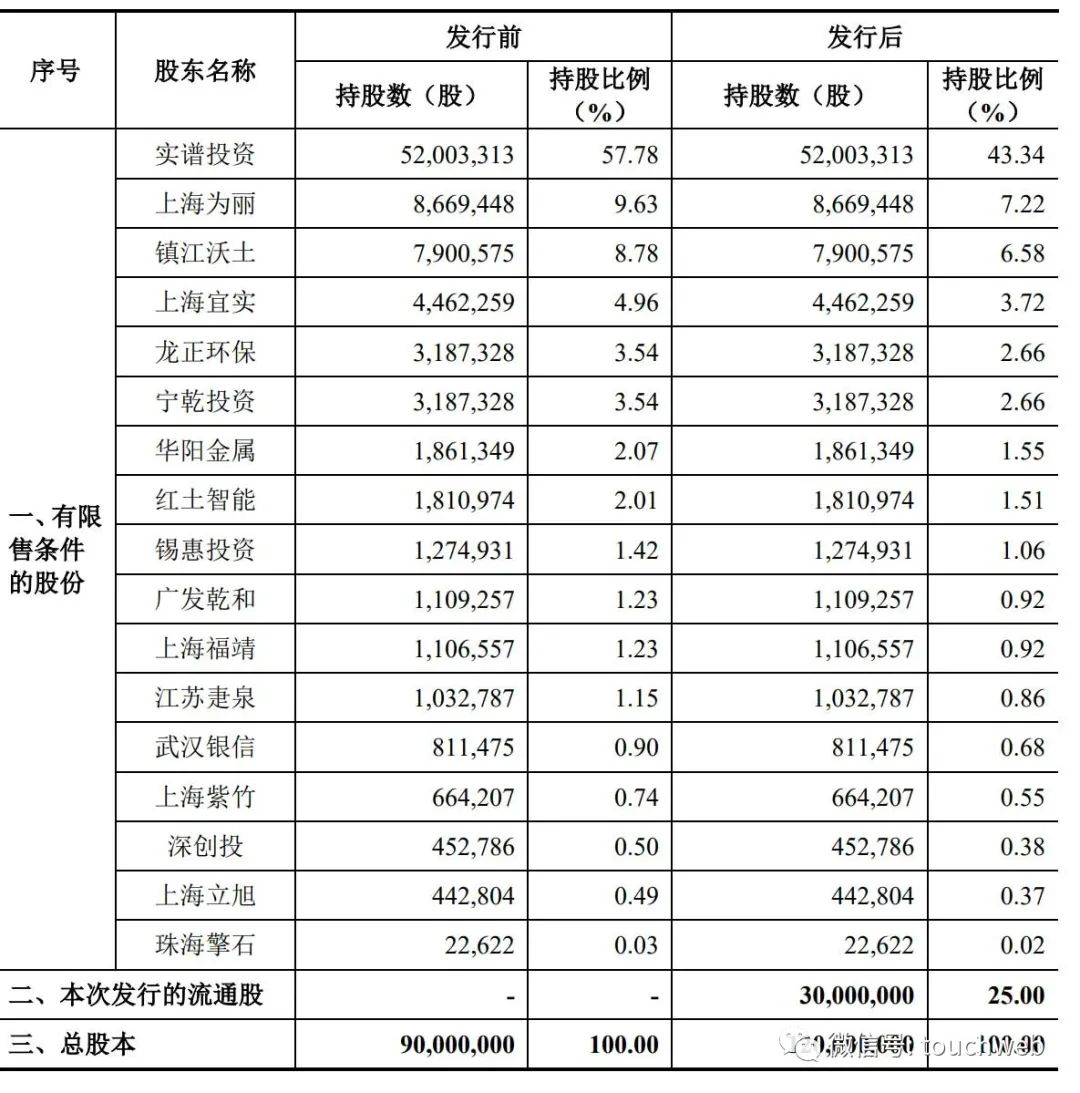 IPO后,实谱投资持股为43.34%,上海为丽持股为7.22%,镇江沃土持股为6.58%,上海宜实持股为3.72%,龙正环保、宁乾投资分别持股为2.66%,华阳金属持股为1.55%。深创投也是股东。