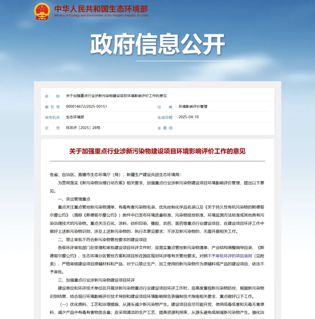 新污染物治理是生态文明建设的重要组成部分,也是实现“美丽中国”目标的关键环节。国家《新污染物治理行动方案》明确提出,要建立健全新污染物治理体系,加强源头防控、过程管控和末端治理,全面提升新污染物检测、评估和治理能力。
