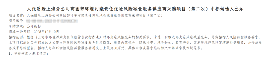 近日,得益于在环境检测领域的多年积累和丰富经验,实朴检测成功中标成为人保财险上海分公司的环境污染责任保险风险减量服务供应商。这不仅肯定了实朴检测的专业积累,也体现了市场对“检测+咨询”整体服务理念的认可。