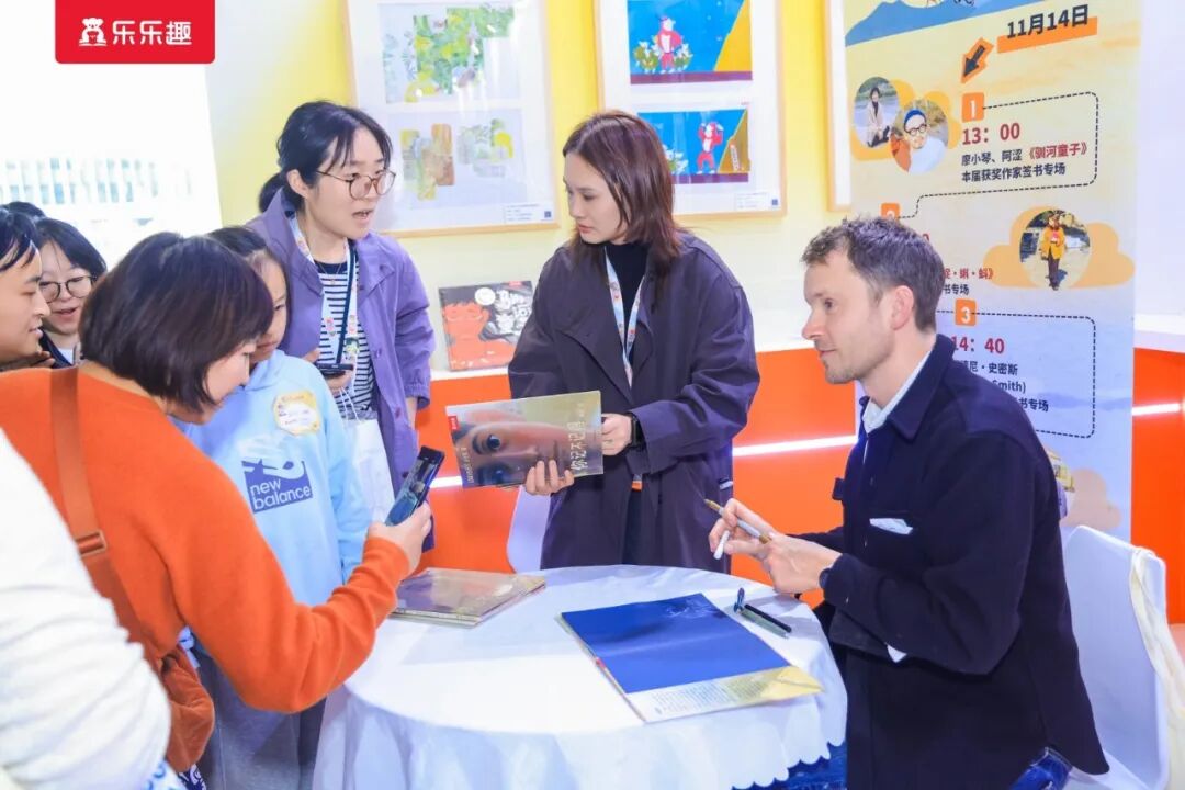 在乐乐趣展位,丰子恺儿童图画书奖佳作奖《驯河童子》的作者亲临现场,娓娓道来作品背后的创作故事;《神兽也有小时候》的作者则以生动有趣的讲述,带领孩子们认识萌趣的中国神兽;而新书《金蟾大侦探》的互动环节,则将小读者们带入了一个既奇幻又烧脑的推理世界,激发了无限的想象力。
