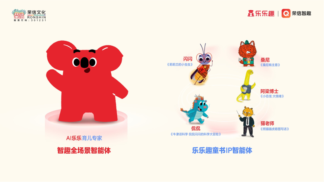 荣信文化重点打造AI智能陪伴玩偶和AI智能体,让绘本角色“走出书页”,成为孩子的个性化教育伙伴。